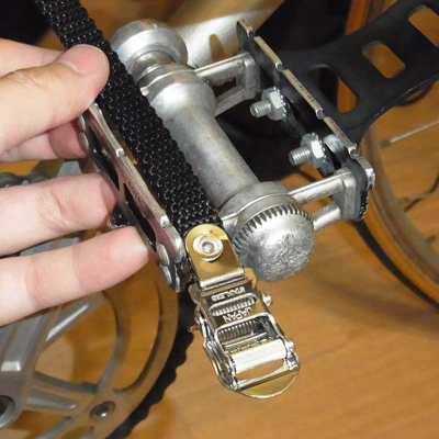 トゥーストラップ、トゥークリップには過大な力がかかるので確実な装着が望ましいです。